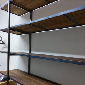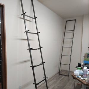 | 自社の作業部屋に大型ラックを製作・設置しました。工業系デザインでスリム化及び軽量化を目標にしてデザインしました。 高さ 約260p 幅 約220p 奥行 約40p 天板は廃材を使用。 仕上げは素材感を活かしクリアスプレーのみ塗布です。 |